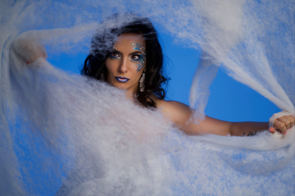 A választás tökéletes volt, Dóri fantasztikusan hozta a megálmodott karaktert. A varázslatos, extravagáns sminket Kardos Kittinek köszönhetjük, a tökéletes, biztonságos és kreatív teret pedig a Holker műterem biztosította számunkra.